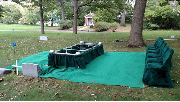 We go the extra mile to keep cemeteries clean and neat, to preserve existing graves by laying down Duramats when having to cross other graves, we haul off all dirt and bring it back when it is needed to fill the grave. By doing this, it is neat and clean around the gravesite for the grave-side service. We keep our tents, Grass chairs, and lowering devices neat and clean. We continue to do maintenance to the gravesite after the burial for weeks and months ahead so your experience at the cemetery is the very best possible. For our veterans, we have the opportunity to serve what we have created and what we call “The Walk of Pride”. We line the walkway with flags from the hearse, to the gravesite to walk in between, and we also fly the flag on the corner of the tent during the graveside service. It is our goal to honor respectfully the veterans we serve.